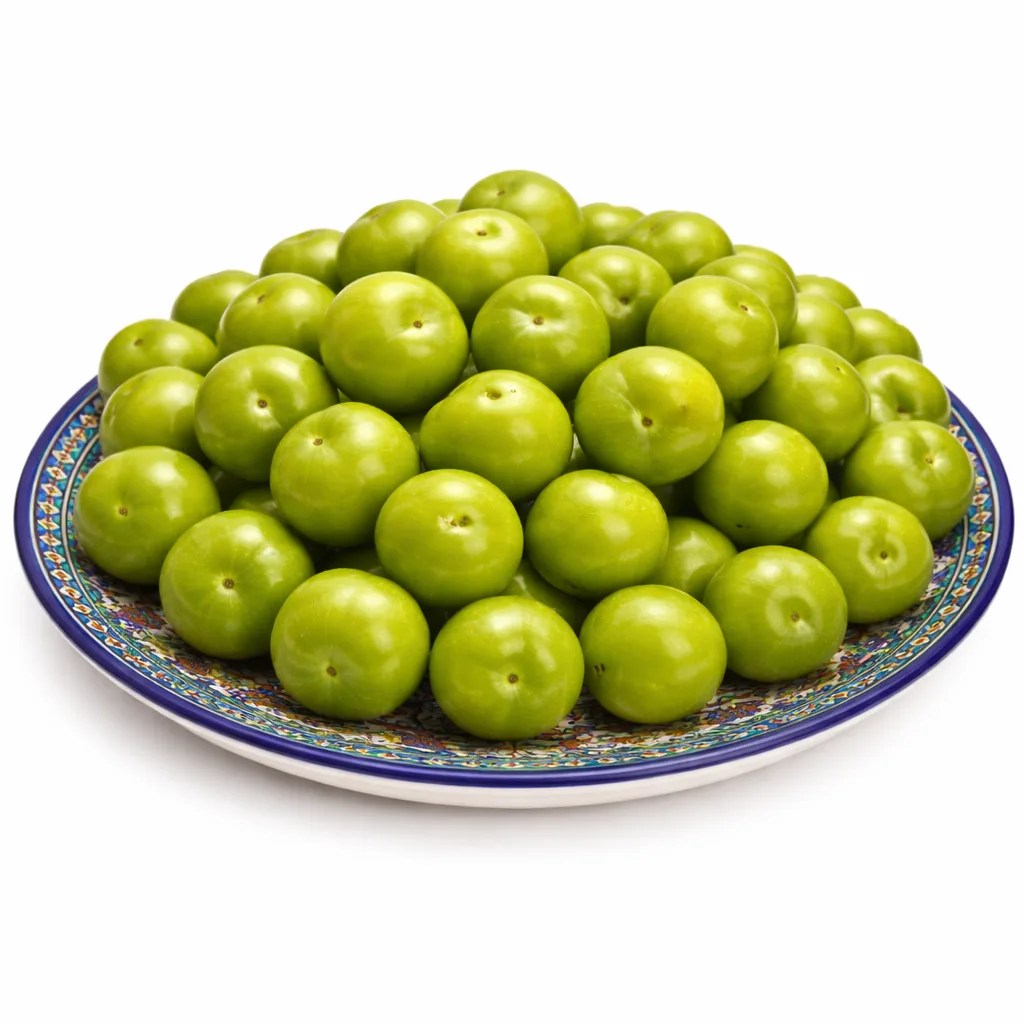 Сочная зелёная алыча с яркой кислинкой. Натуральный продукт из Таджикистана — идеально для любителей кислых фруктов и домашних соусов.